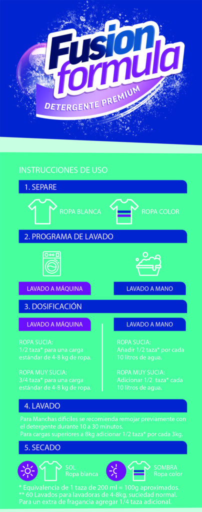 ¿Sabías que una dosificación incorrecta puede arruinar tus prendas y desperdiciar detergente? No dejes que eso pase. Con la taza dosificadora Fusion Formula, vas a maximizar el rendimiento de tu detergente, ahorrar dinero y, lo mejor de todo, lograr un lavado perfecto en cada carga. ¡Es el accesorio que todo buen Fusion Lover necesita en su vida.